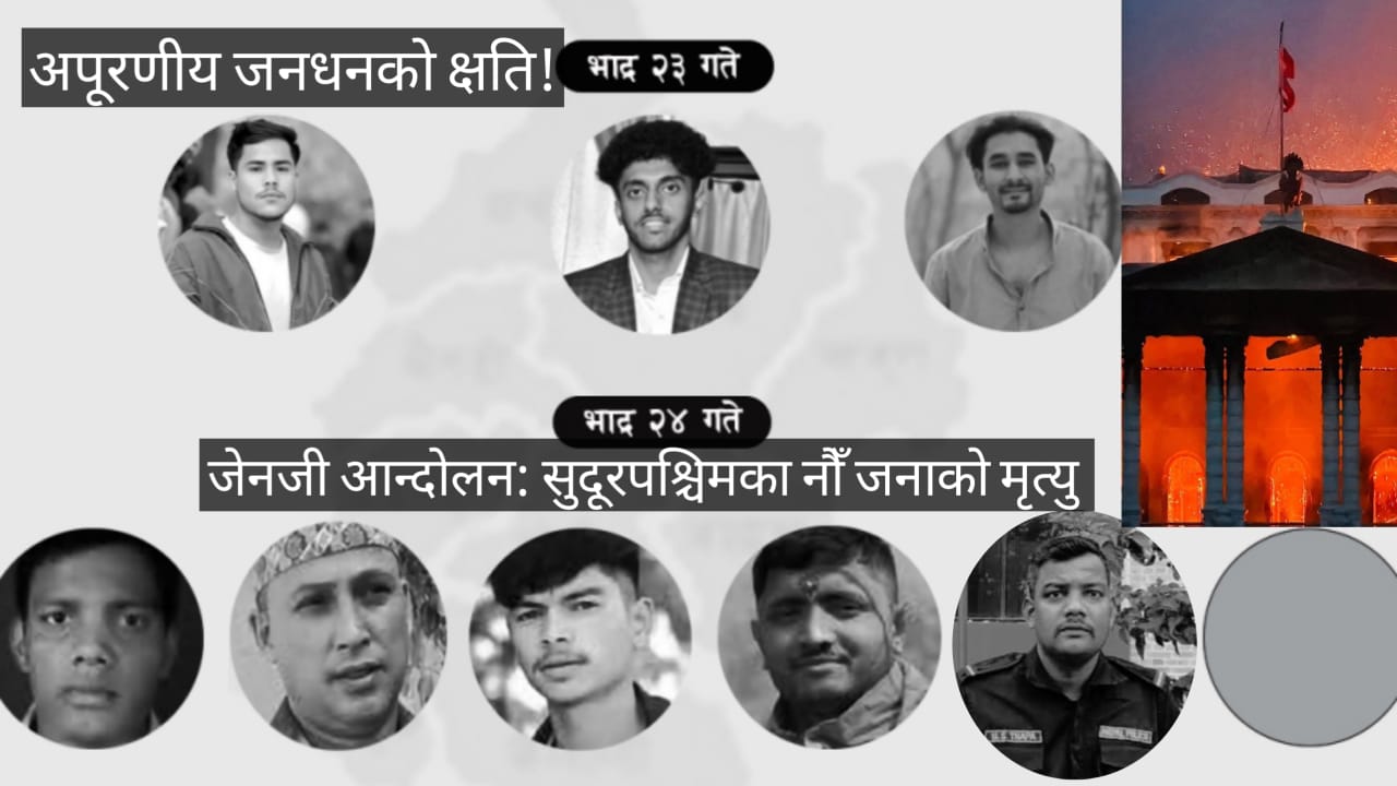 कालीमाटीमा प्रहरीले चलाएको गोली लागेर बझाङका २८ वर्षीय भीमराज धामीको भदौ २४ गते निधन भएको थियो। कीर्तिपुर बस्ने भीमराज कृषि व्यवसायी थिए। उनकी श्रीमती, २ महिनाका छोरा र ७५ वर्षकी आमा छन्। प्रहरीको गोली लागेर कञ्चनपुरको भीमदत्त नगरपालिका–११ गड्डाचौकीका ४८ वर्षीय नीरज पन्तको पनि निधन भएको छ। उनी श्रीमती सँगै काठमाडौँको महाराजगन्जमा आयुर्वेदिक औषधि व्यवसाय गर्थे। २५ वर्षअघि काठमाडौँ छिरेका उनी उतै व्यवसाय गरेर बस्दै आएका थिए। प्रदर्शनमा गोली लागेर गम्भीर घाइते भएका बैतडीको शिवनाथ गाउँपालिका–२ का दीपकसिंह साउदको पनि उपचारका क्रममा निधन भएको छ। काठमाडौँको कीर्तिपुरमा बसेर कोरियन भाषा सिकिरहेका उनलाई बुवा कालु सिंहले जेनतेन गरेर छोरालाई भाषा कक्षा लिन काठमाडौँ पठाएका थिए। गोली लागेर गम्भीर घाइते भएका दीपकको शुक्रवार साँझ ८ बजे काठमाडौँको त्रिवि शिक्षण अस्पतालमा उपचारका क्रममा निधन भएको थियो। काठमाडौँमा भएको जेनजी आन्दोलनमा महाराजगन्ज प्रहरी वृत्तमा कार्यरत प्रहरी जवान उत्तम सिंह थापाको पनि भदौ २४ गते निधन भएका थियो। दार्चुलाको लेकम गाउँपालिका–३ लाली घुमखोलीका थापालाई आन्दोलनकारीले डिएसपी भन्दै क्रूर रूपमा कुटीकुटी हत्या गरेका थिए । नौँ महिना पहिले भाइ गुमाएका उत्तमको घरमा अहिले आमा र श्रीमती सहाराविहिन भएका छन् ।