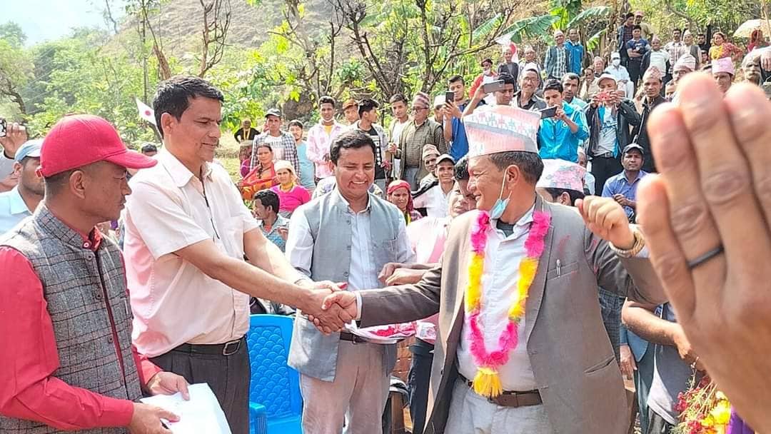 नौगाडमा कांग्रेशबाट अध्यक्षका आकांक्षि लालबहादुर धामीसहित दर्जन कार्यकर्ता एमालेमा प्रवेस