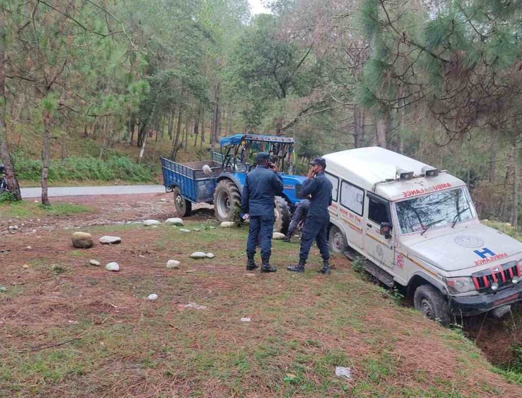 डडेल्धुरामा शव बोकेको एम्बुलेन्स दुर्घटना